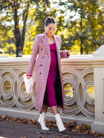 Magenta & plaid for fall! A sweater dress that is beautiful for autumn and beyond. Form-fitting yet comfortable, a statement color that's perfect for both day and night!
