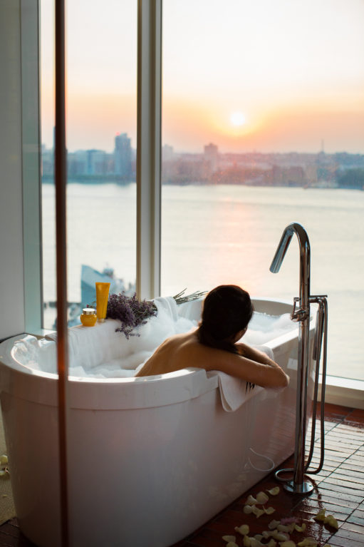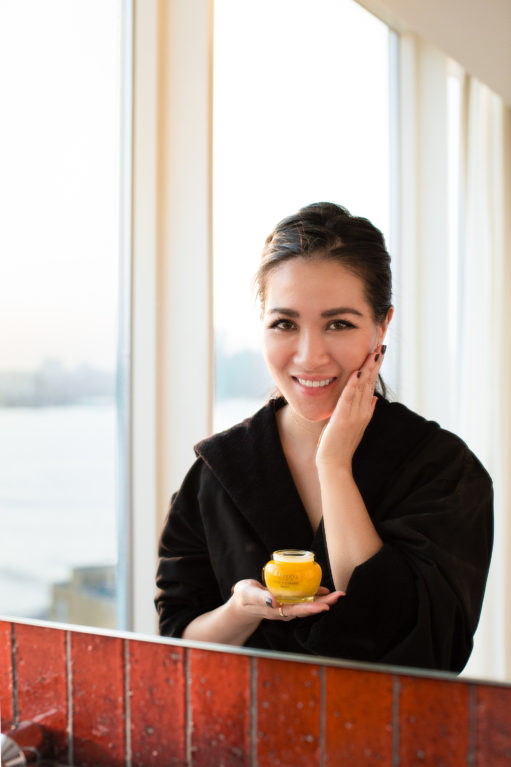 A morning routine that leaves you feeling refreshed and a night ritual that soothes the daily stressors away, I start with a double-cleansing system, then eye cream, face serum, and then finish with a cream moisturizer:
