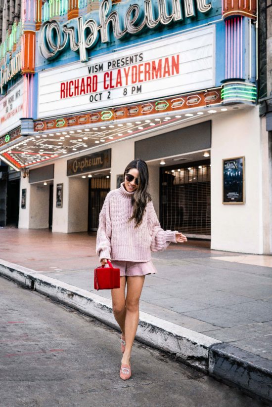 Even though we’re in LA, some days are actually quite cool here. And these days are great for comfy oversized sweaters. I bought this powder pink H&M sweater a week ago and love the drop shoulders and balloon sleeves. It’s super soft, perfectly oversized, and under $25!