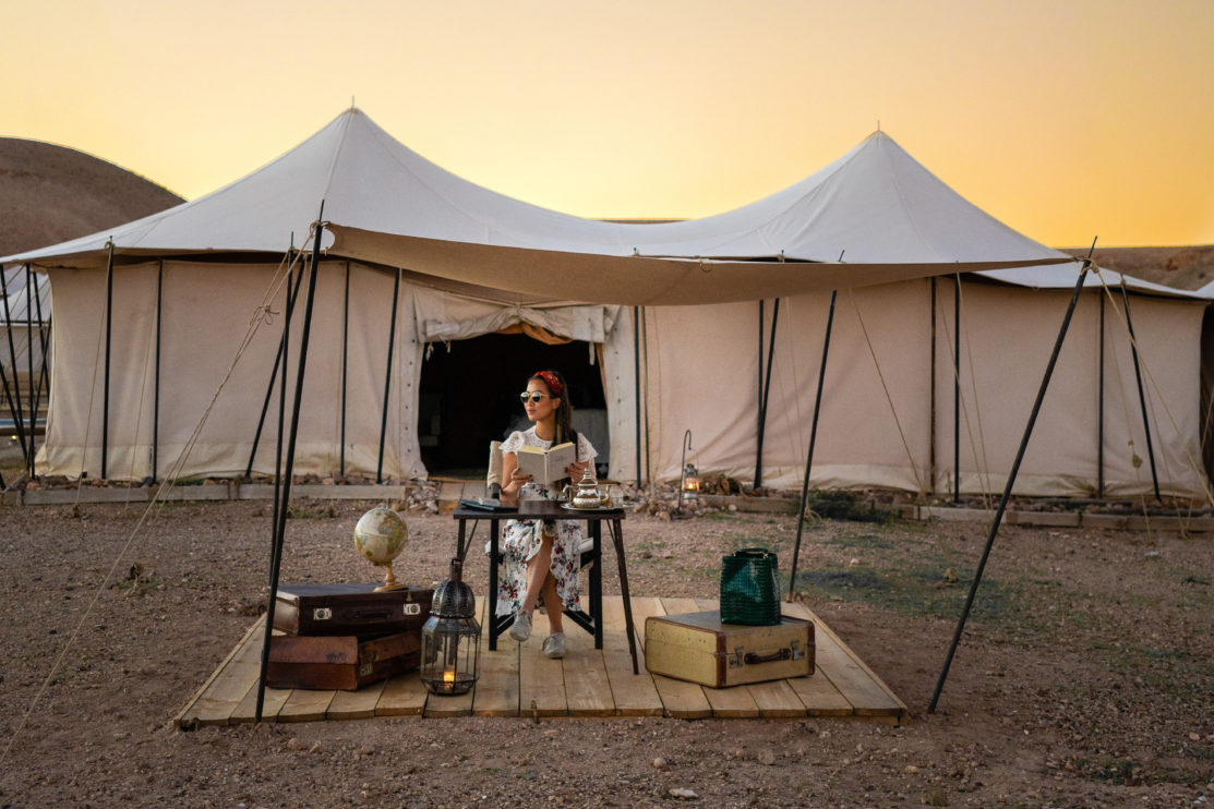 Sunset at camp || Outfit 3: Marissa Webb dress, Pedro Garcia sneakers, Namjosh headband, Ray Ban sunglasses