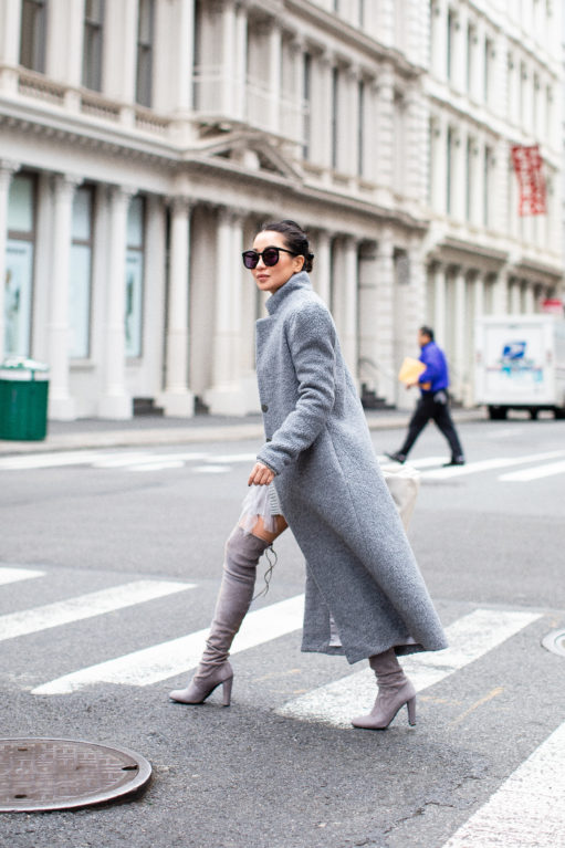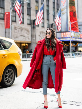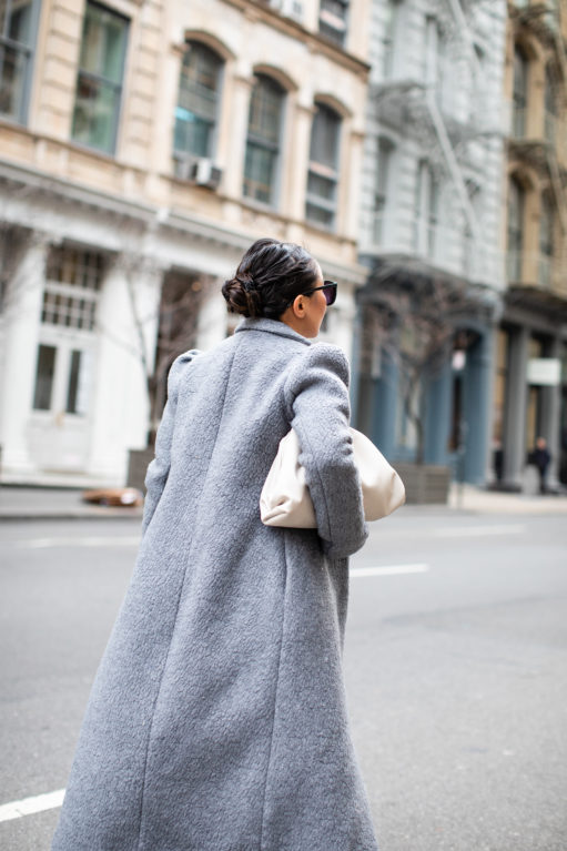 There’s no secret that I love teddy coats (as seen here and here).  Shearling textured coats are my winter favorites.  They’re roomy so they fit well over thick sweaters, they’re not fussy so they go from work to weekend seamlessly, and most importantly they’re warm!  What I love about this particular maxi shearling coat is that it’s an updated version of the ever so popular teddy coat design.  A sleek long shape with a high collar and romantic puff sleeves anchored by rich textures.