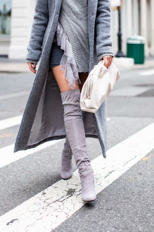 With all of these grays, below are more of my favorites.  I actually just bought this gray ruffle sweater and it’s such a statement piece!  Easy with gray jeans and so chic with high waisted leather pants.