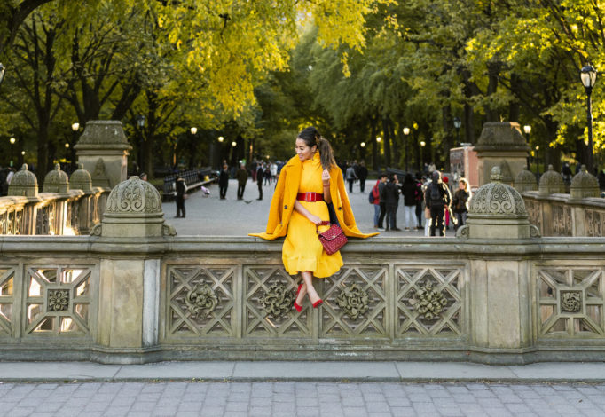 Both of these looks are somewhat tonal punctuated with a neutral color. The shades of yellow naturally pairs well with red. Imagine sunset colors. Yellow overall is such a happy and bright color, making it a great piece for all seasons.