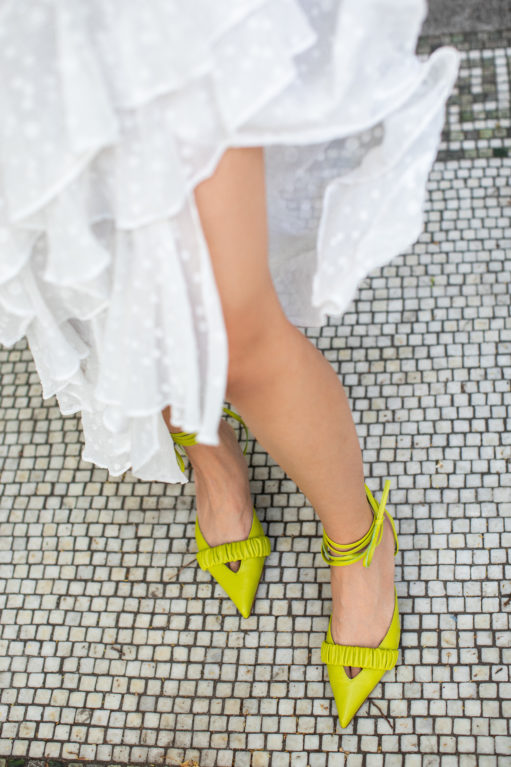Light color accessories for summer – this fun 90’s style bag (under $38) with lime green kitten heels.  Ummm… this bag also comes in a green color.  Since I wear these heels so much, I’m thinking of picking up the green bag as well now! =D