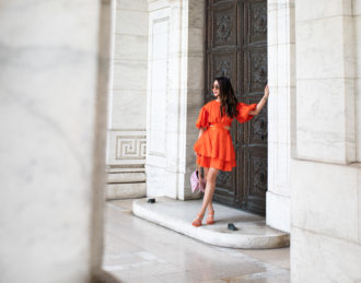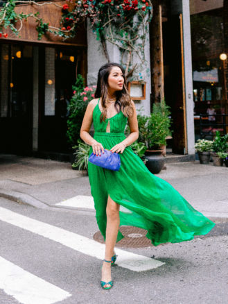 Summer is made for statement dresses and vibrant color stories. Embracing summer to the fullest, I paired a voluminous cut-out dress with a gentler hue.