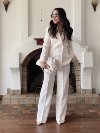 Just a few of my favorite ways to wear a crisp ivory blazer. From classic to dressy to casual looks, these pairings highlight the versatility of this double-breasted blazer.